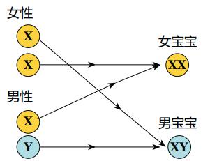 在精子和卵子不期而遇结合为受精卵 的那一瞬间,宝宝的性别就已经被决定了, 起关键作用的是性染色体。受精时,若含 X 性染色体的精子与卵子结合,受精卵为 XX 型,发育为女宝宝;若含 Y 性染色体的 精子与卵子结合,受精卵为 XY 型,发育 成男宝宝,因此,胎宝宝的性别完全由男 性的精子决定。